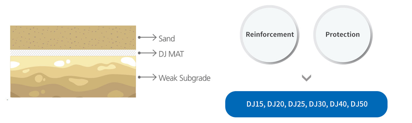 Ultimatex® DJ series of woven polyester geotextiles are manufactured from high tensile strength polyester yarns with low elongation to meet most of demanding from construction field.
