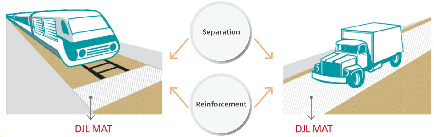 The advantages for Ultimatex® DJL Series →DJL MAT help to build road and railways on weak soil.